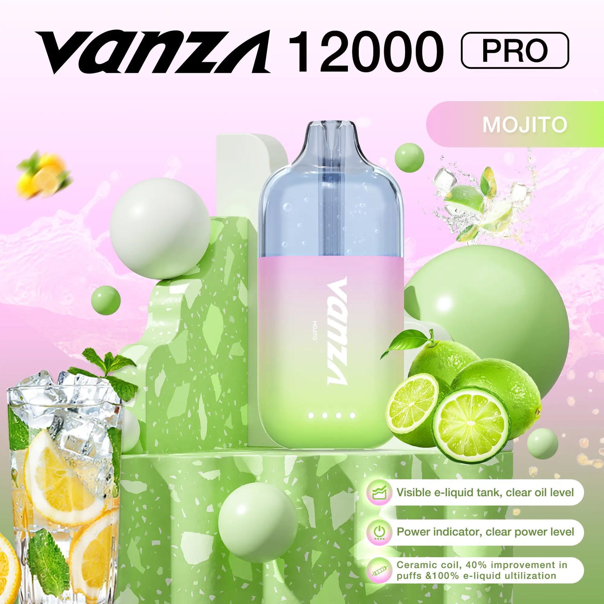 VANZA 12000 PRO ofrece una experiencia de vapeo excepcional con su avanzada tecnología de bobinas de cerámica. Cuenta con un tanque de e-líquido visible para un monitoreo fácil del nivel de aceite y una luz indicadora de batería que muestra claramente la energía restante. La tecnología avanzada de bobinas de cerámica mejora el rendimiento al aumentar las caladas en un 40% y asegura una utilización del e-líquido al 100%, convirtiéndolo en la opción definitiva para una experiencia de vapeo superior.